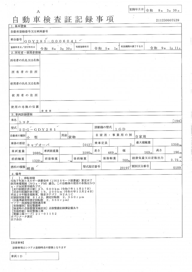 | 型式 | 2DG-GDY281 |