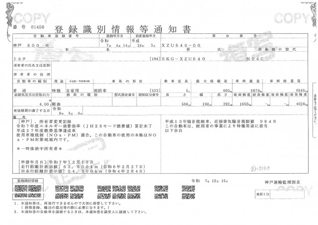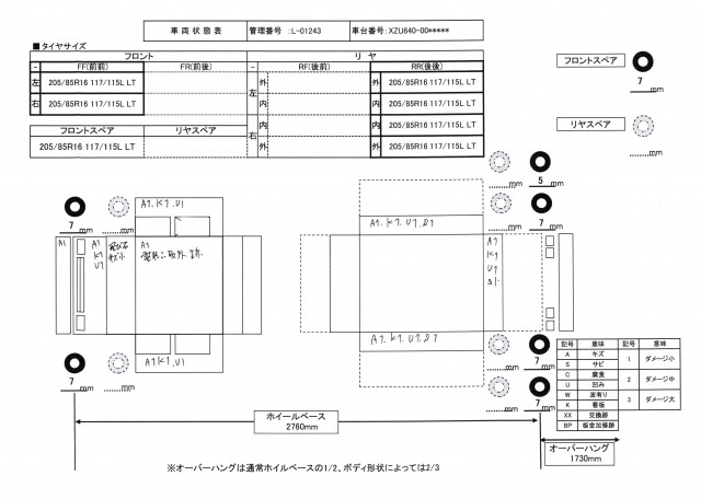 ▲フロントガラス:飛び石キズ小▲フロントグリル:固定不良▲キャビン外装:灯火類取外跡、看板跡、エンブレム欠品▲キャビン内装:キズ、ビス穴、電装品取外し跡、灰皿欠品▲座席シート:破れ大▲後席ドア:内張破れ▲エンジン周辺:オイル汚れ▲シャーシ・下回り:サビ▲マフラー:サビ▲ドラックリングブーツ:ヒビ▲リヤバンパー欠品:車検時要取付(消防車登録時は不要) ※他、詳細はお問い合わせください
