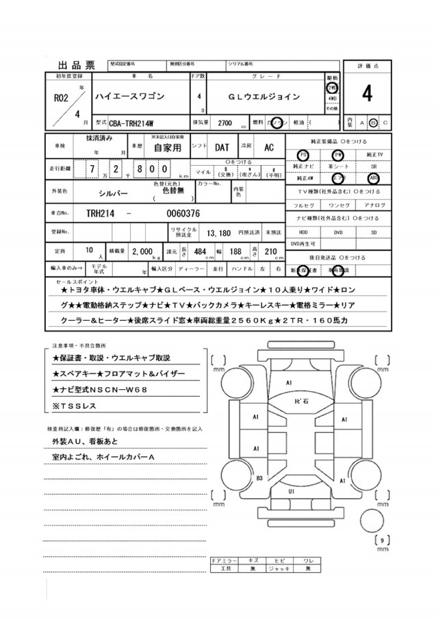 ★トヨタ車体・ウエルキャブ★GLベース・ウエルジョイン★10人乗り★ワイド★ロング★★電動格納ステップ★ナビ★TV★バックカメラ★キーレスキー★電格ミラー★リアクーラー&ヒーター★後席スライド窓★車両総重量2560Kg★2TR・160馬力★保証書・取説・ウエルキャブ取説★スペアキー★フロアマット&バイザー★ナビ型式NSCNーW68※TSSレス