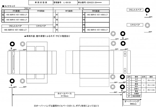 ▲車両外装:屋外保管によるキズ・サビ小程度あり ◆14人乗りの為、運転するには中型免許以上が必要です。また、旅客運送業務を行う場合(営業用登録車)は中型二種免許が必要になります。予めご注意下さい。自家用登録車の場合は、二種免許は不要です◆