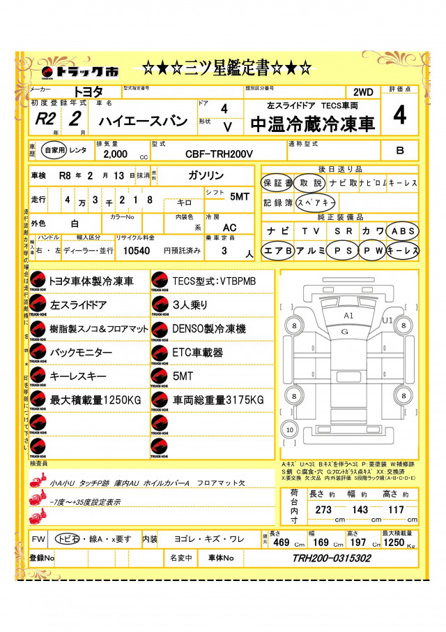 | 最大積載量 | 1,250(kg) |