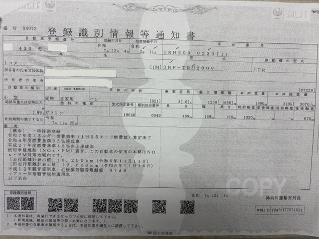 | 車検 | 抹消 |
