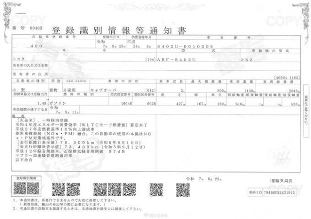 車検 | 抹消 |