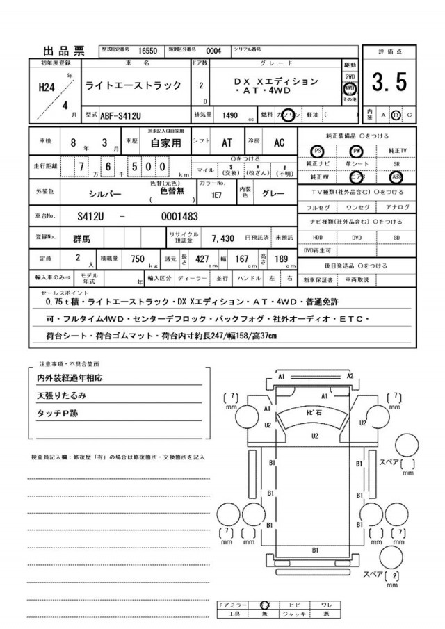 | 走行距離 | 76,500(km) |