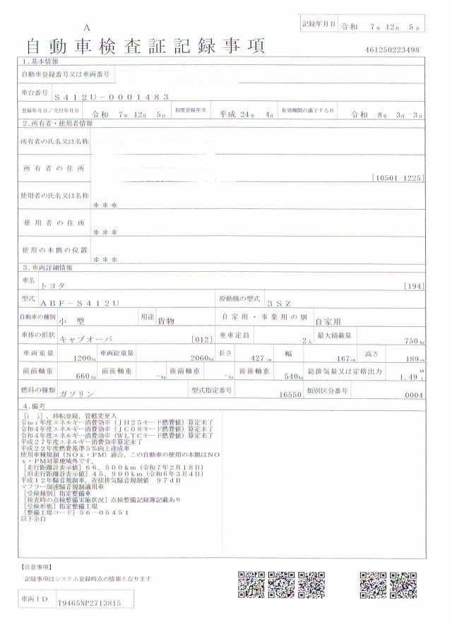 | 型式 | ABF-S412U |