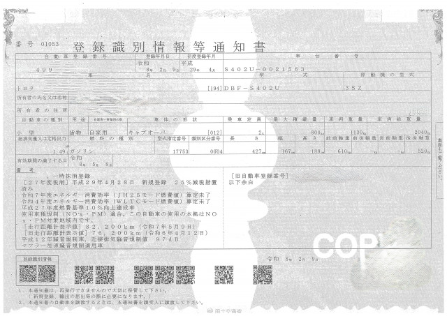 | 車検 | 抹消 |