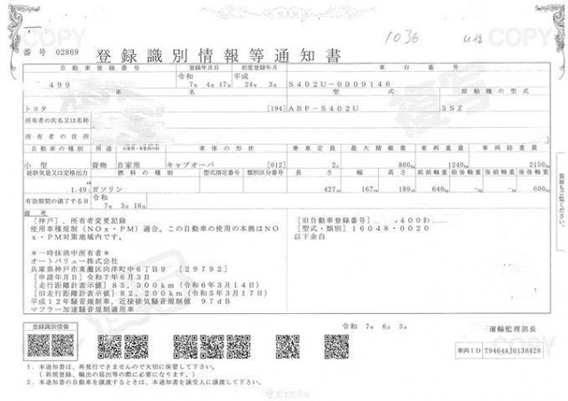 荷台内寸250×160×37 車両外寸427×167×189 車両総重量3.5t未満 新普通免許証 4ナンバー エンジン型式3SZ 1500CC 保証付 小型 トラック