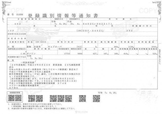 | 車検 | 抹消 |