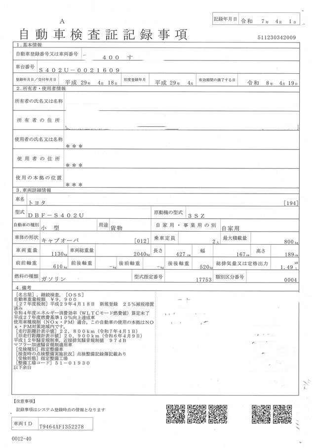 | メーカー/車名 | トヨタ タウンエーストラック |
