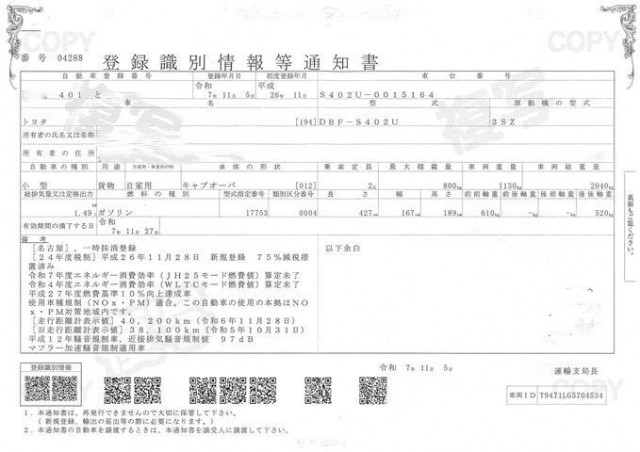 荷台内寸250×160×36 車両外寸427×167×189 車両総重量3.5t未満 新普通免許証 4ナンバー エンジン型式3SZ 1500CC 保証付 小型 トラック