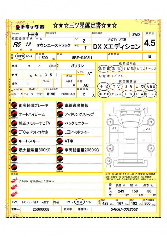 | メーカー/車名 | トヨタ タウンエーストラック |