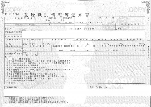 | 車検 | 抹消 |