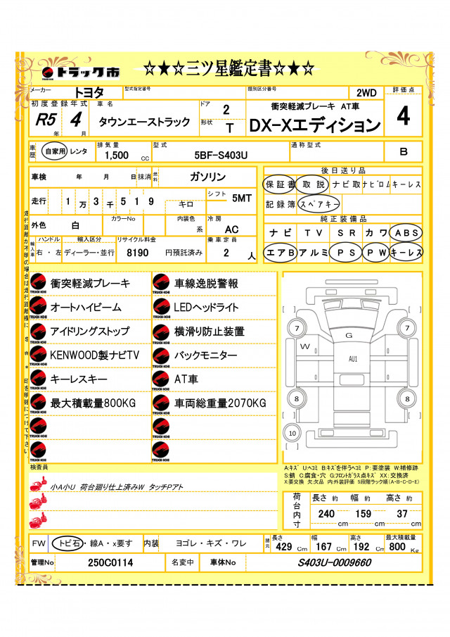 | メーカー/車名 | トヨタ タウンエーストラック |