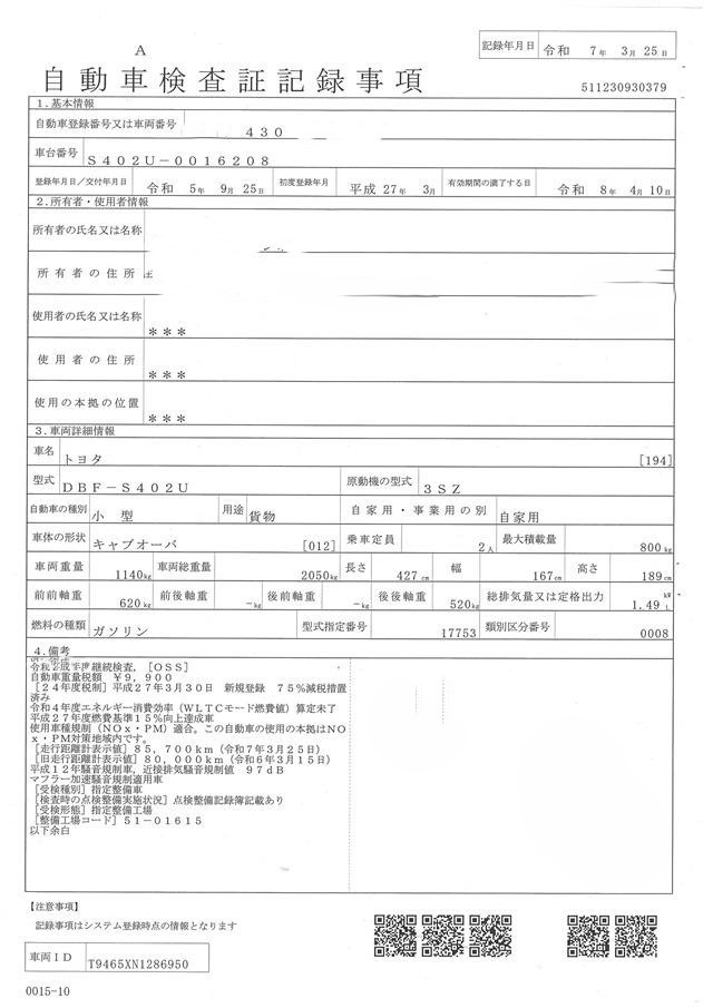年 式平成27年3月