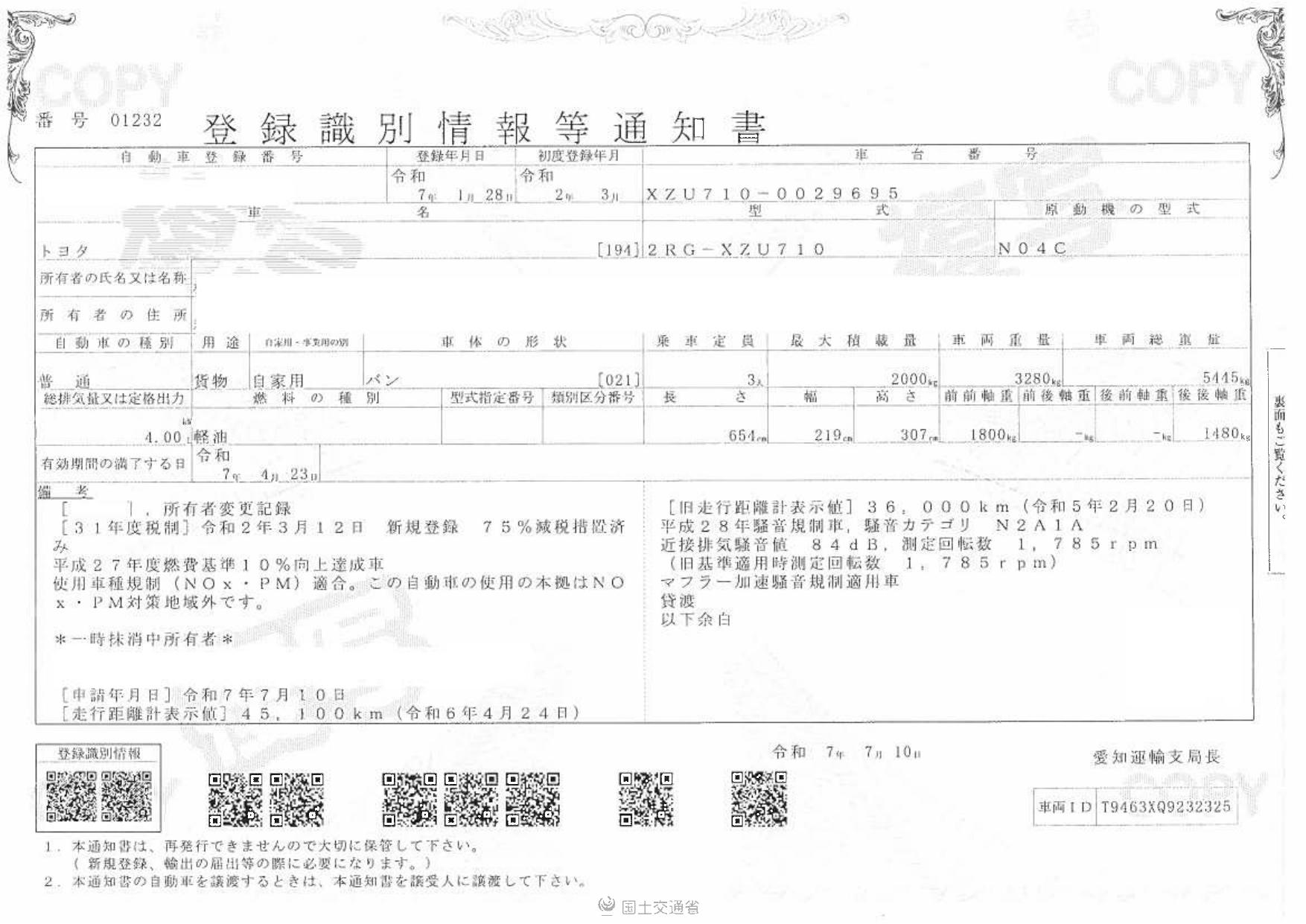 支払総額は愛知県内で登録の場合の金額です。ETCセットアップ費用は含まれていません。