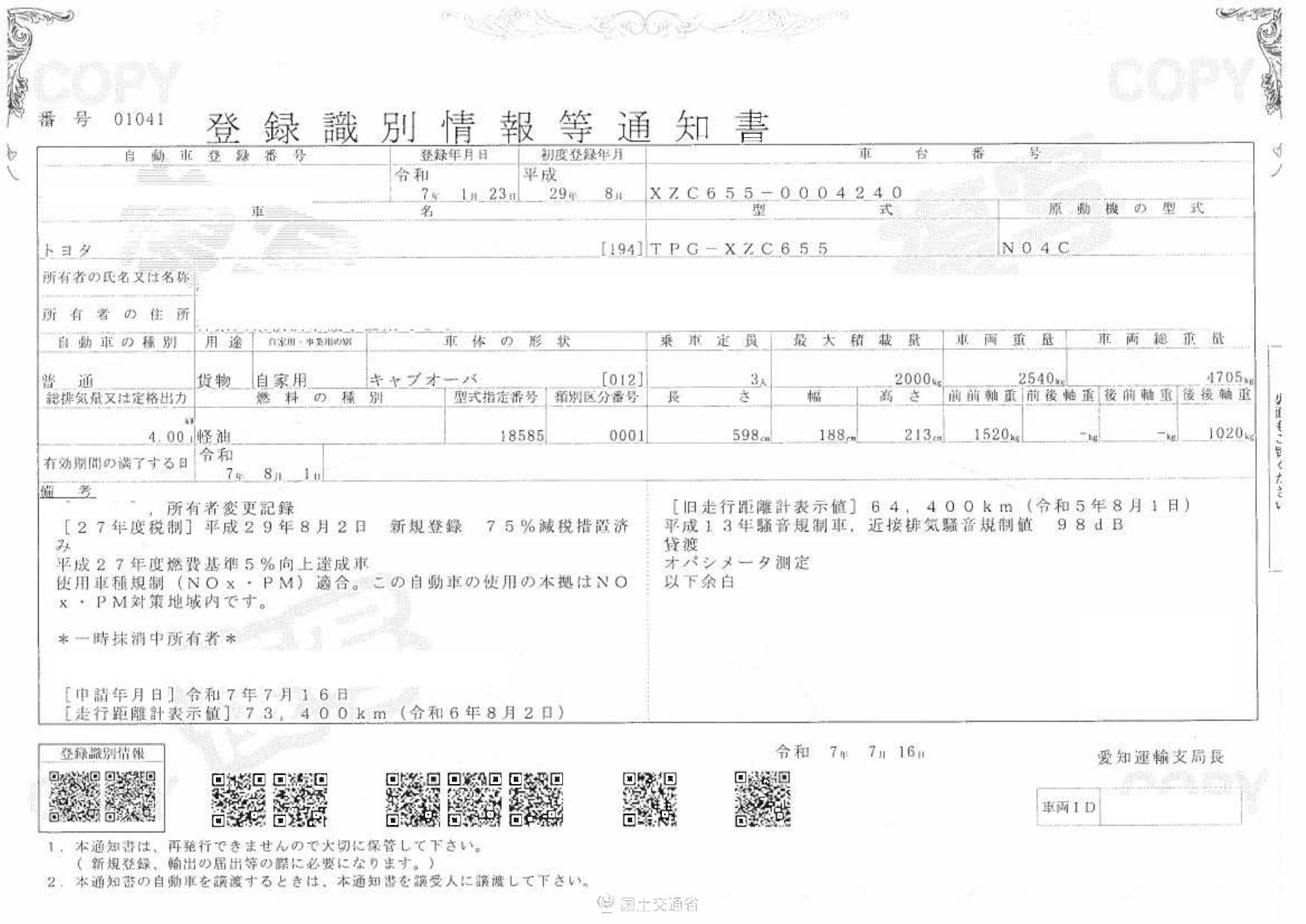支払総額は愛知県内で登録の場合の金額です。ETCセットアップ費用は含まれていません。
