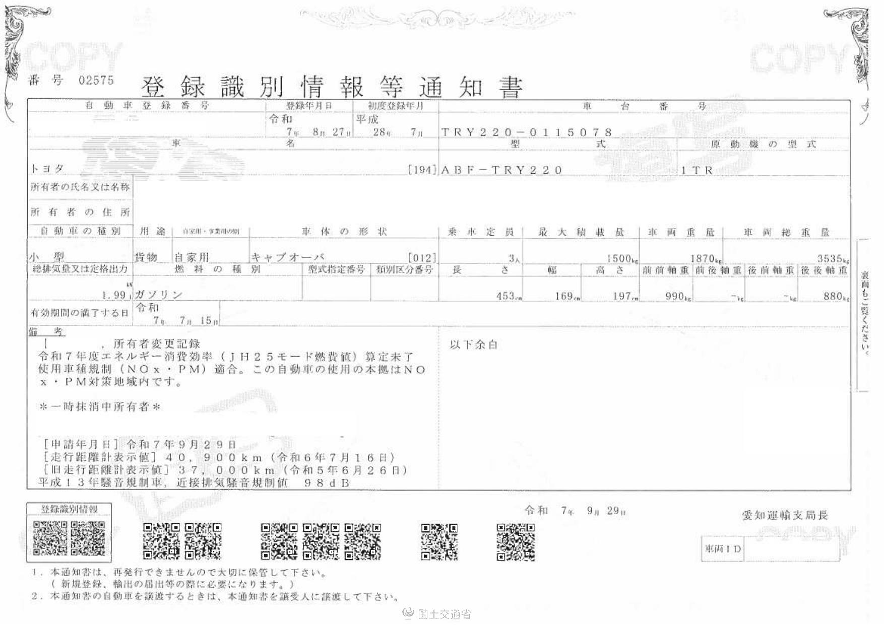 支払総額は愛知県内で登録の場合の金額です。ETCセットアップ費用は含まれていません。