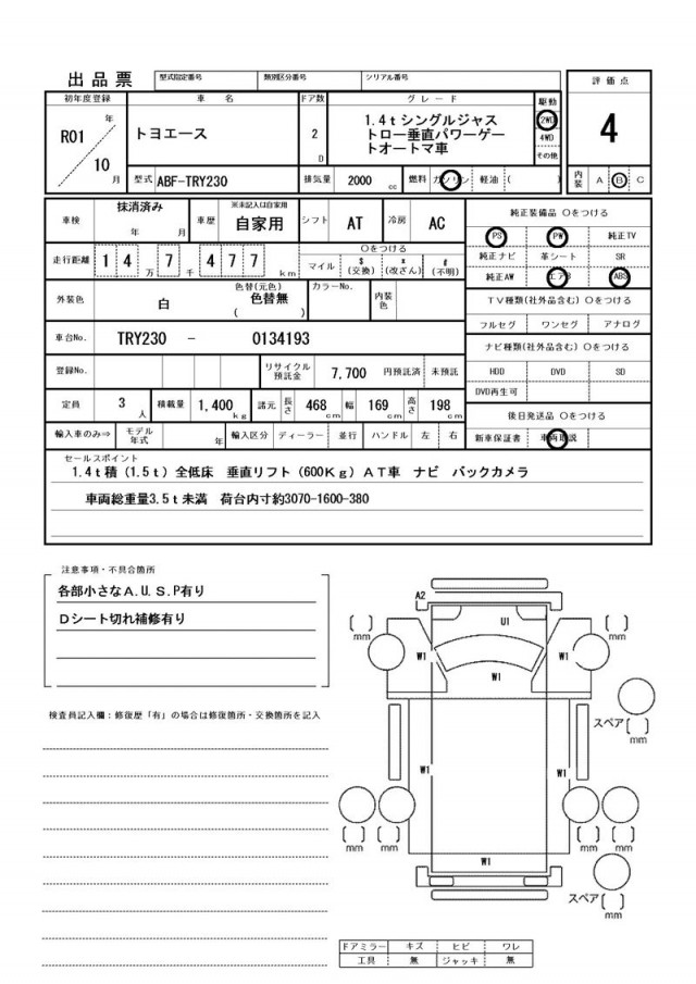 価格には保険料、税金(車両本体の消費税除)、リサイクル料金、リサイクル預託金相当額、登録、納車、陸送等に伴う費用等は含まれておりません。