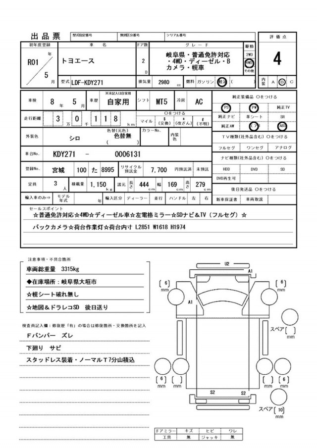 Fバンパー ズレ・下廻り サビ・スタッドレス装着・ノーマルT7分山積込