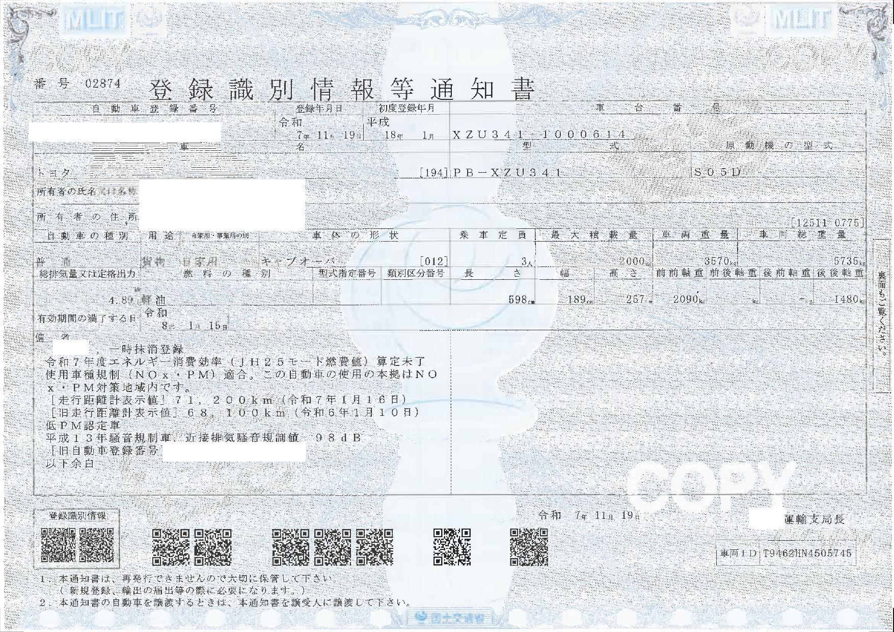 | 車検 | 抹消 |