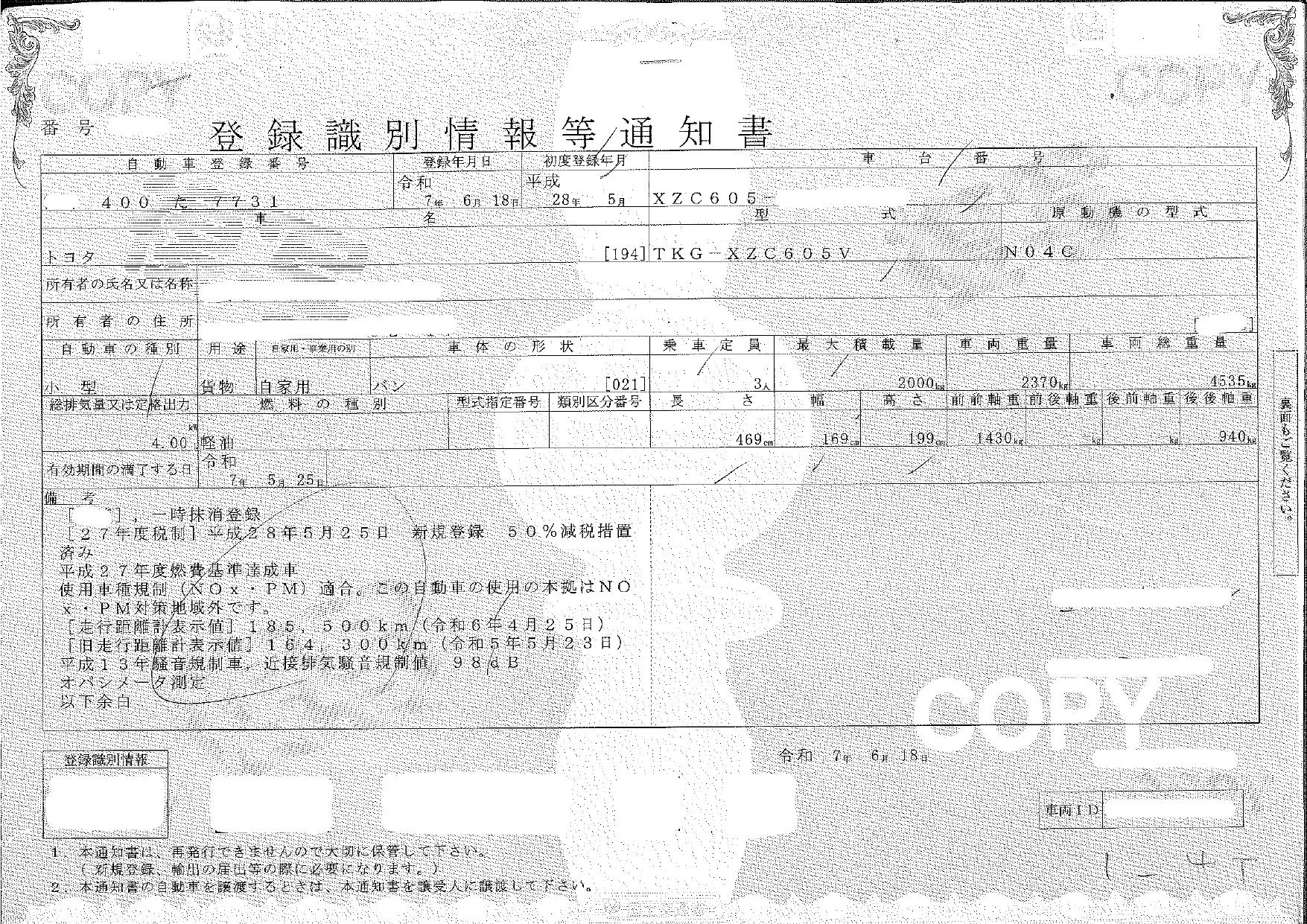 | 車検 | 抹消 |
