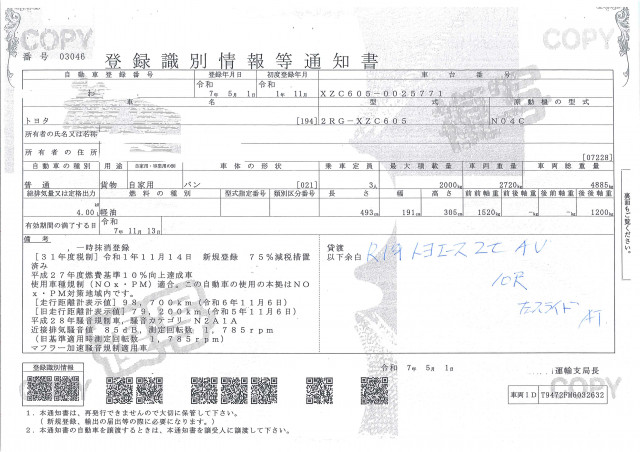 | 車検 | 抹消 |
