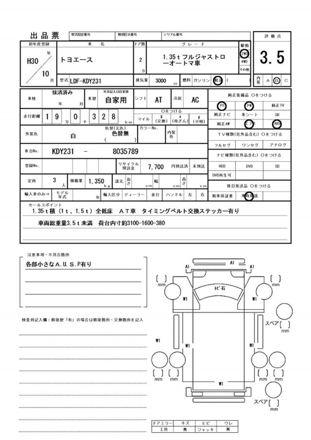 1.35t積 全低床 オートマ車 タイミングベルト交換ステッカー有り 車両総重量3.5t未満