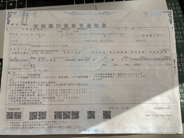 | 車検 | 抹消 |