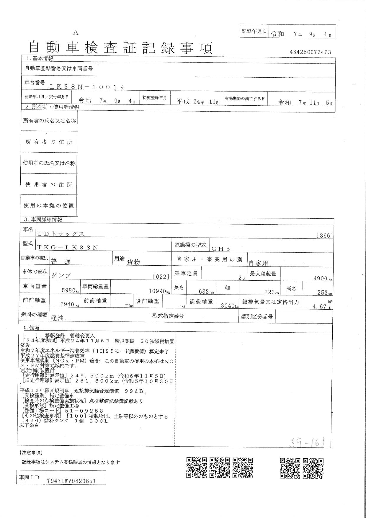 | 走行距離 | 253,000(km) |