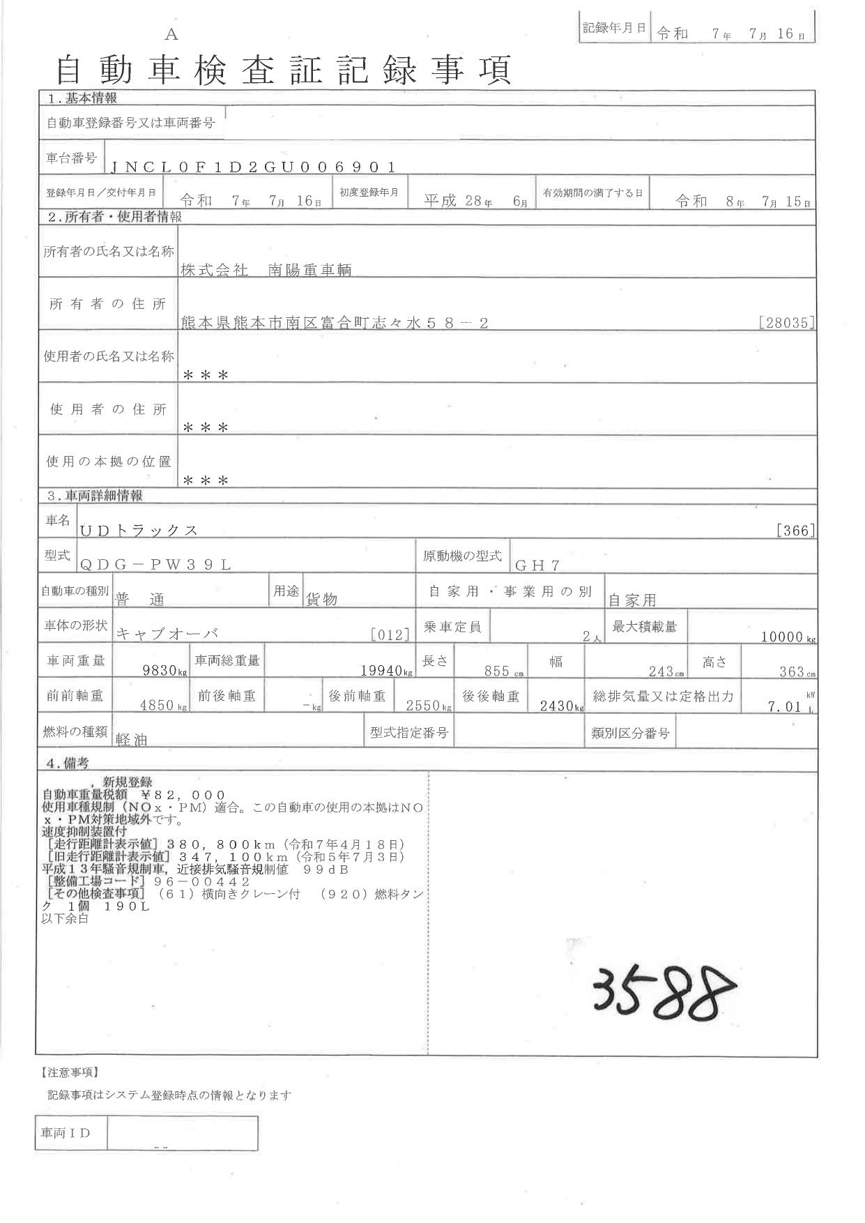 | 走行距離 | 381,657(km) |