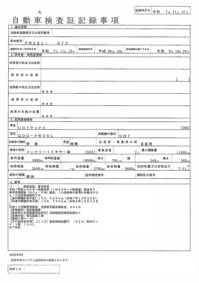 | 最大積載量 | 11,000(kg) |