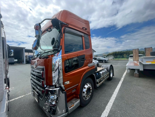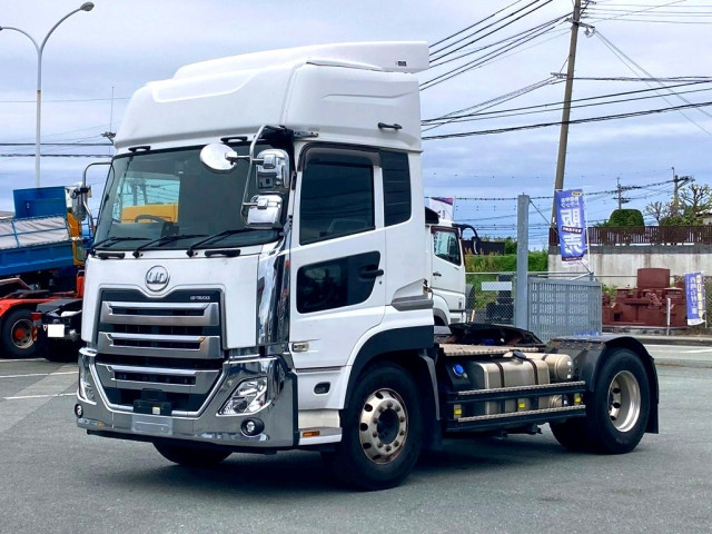 R3年式・UDトラックス・460馬力のトラクタが入庫いたしました。 第五輪荷重は11,500kgとれております。 キャブはメッキパーツで飾っており、アルミホイール装着済と、見た目も拘った1台です! まだまだ活躍できる車輛となっておりますので是非この機会にお問い合わせ下さい。