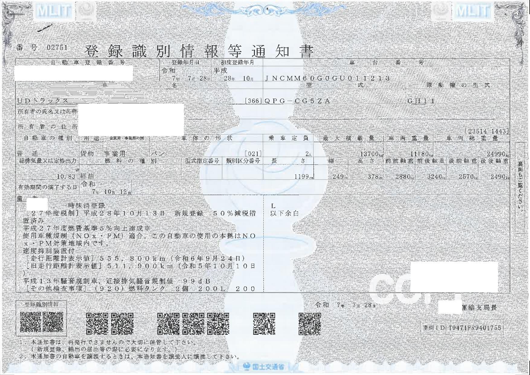 ※抹消車両は、登録時最大積載量が減トンされる可能性が御座います。