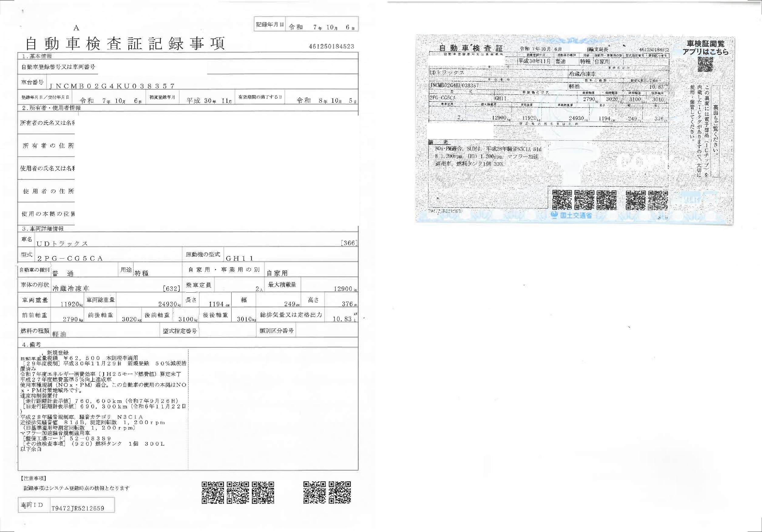 ※抹消車両は、登録時最大積載量が減トンされる可能性が御座います。