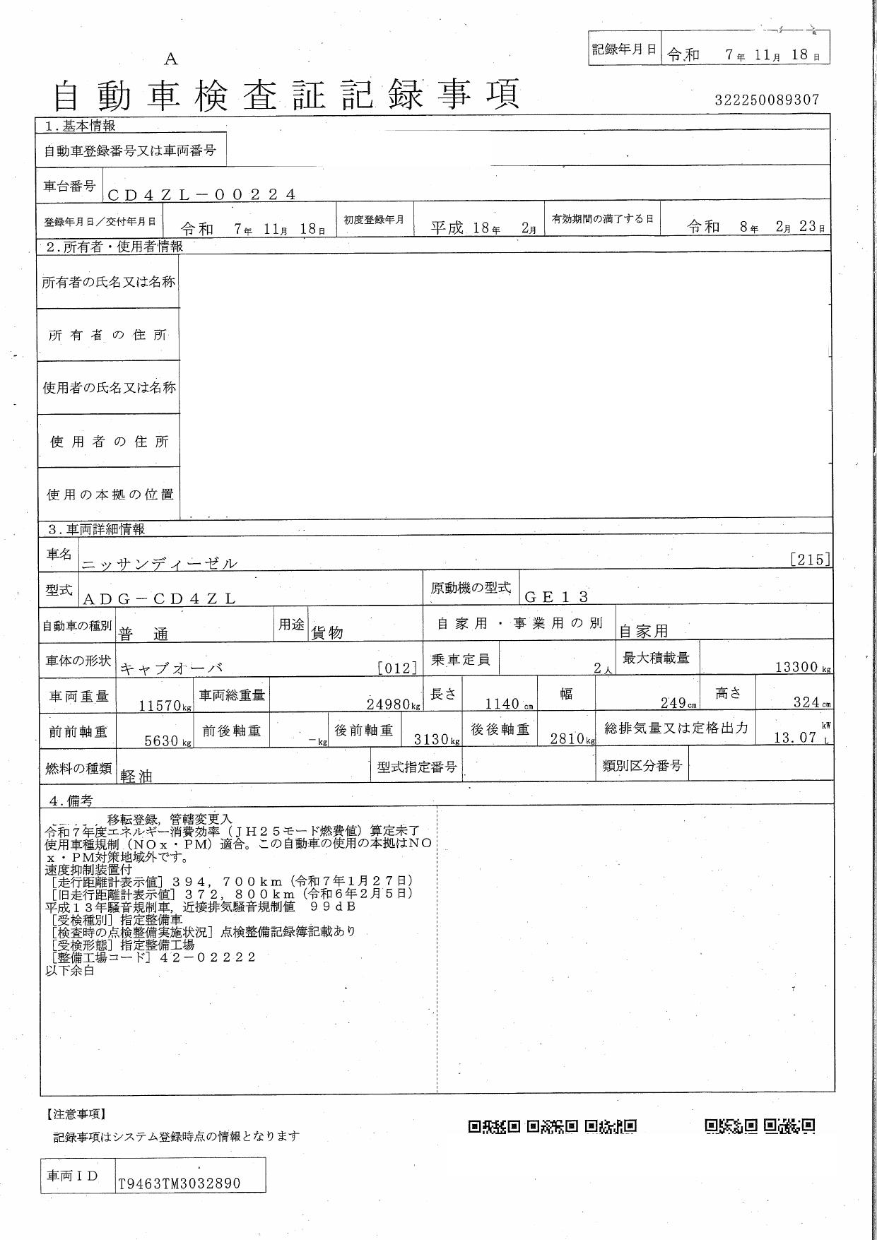 ①フロントバンパーキズ凹 ②右ステップカバー割れ ③左ドアキズ少々 ④床板傷み,穴あき有り ⑤ヨコ根太1本腐食穴有り ⑥左右煽り後方文字消し塗装有り ⑦キャブ右ステップ周辺 鈑金修理跡有り