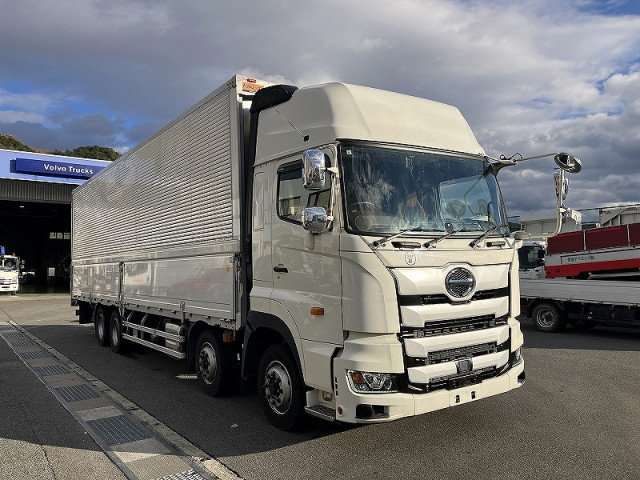 クオン 486番 積載13.7t 大型 アルミウイングアルミウィング キーレス 左電動格納ミラー 左右電動角度調整ミラー バックカメラ 後輪エアサス ベット 車検証サイズ1198×249高376 荷台内寸963×240高262