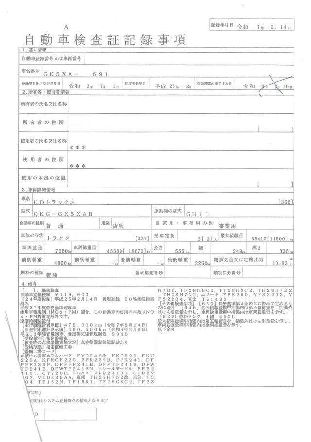| 走行距離 | 494,887(km) |