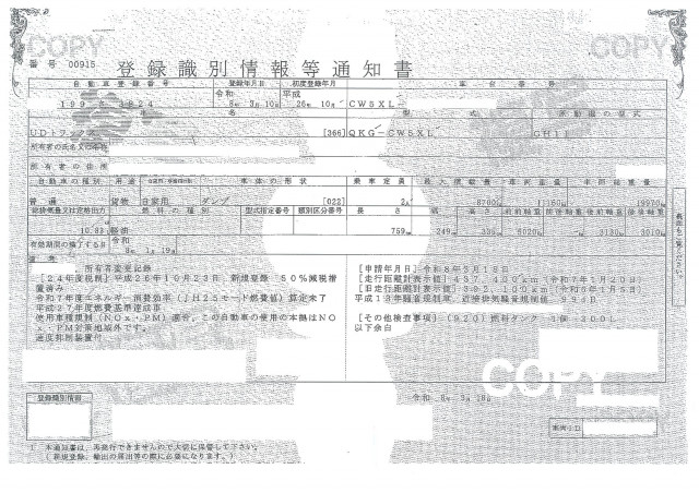 | 車検 | 抹消 |