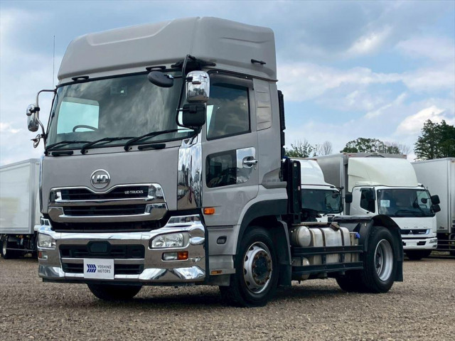 第五輪18t! PTO ダンプレバー エアサス GH13 530馬力 ツーデフ エスコットVII 12速AT UDアクティブステアリング ハイルーフ デフロック アルコアアルミホイール ベッド付 エアサスシート 運転席シートヒーター クラリオンバックモニター ETC2.0 Bluetooth アダプティブクルーズコントロール 前方衝突警告 車線逸脱防止警告
