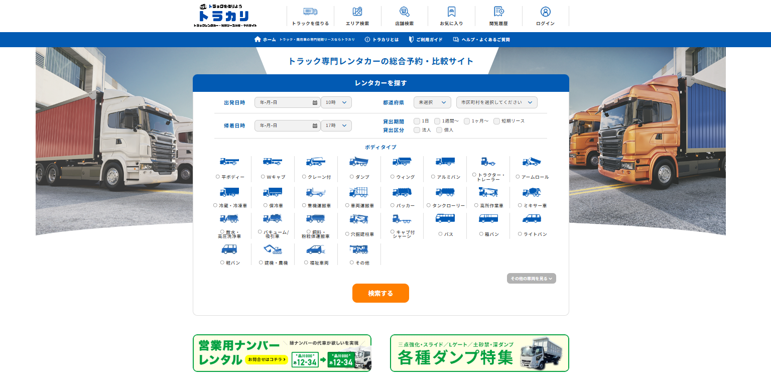 トラックレンタカー検索ならトラカリ!